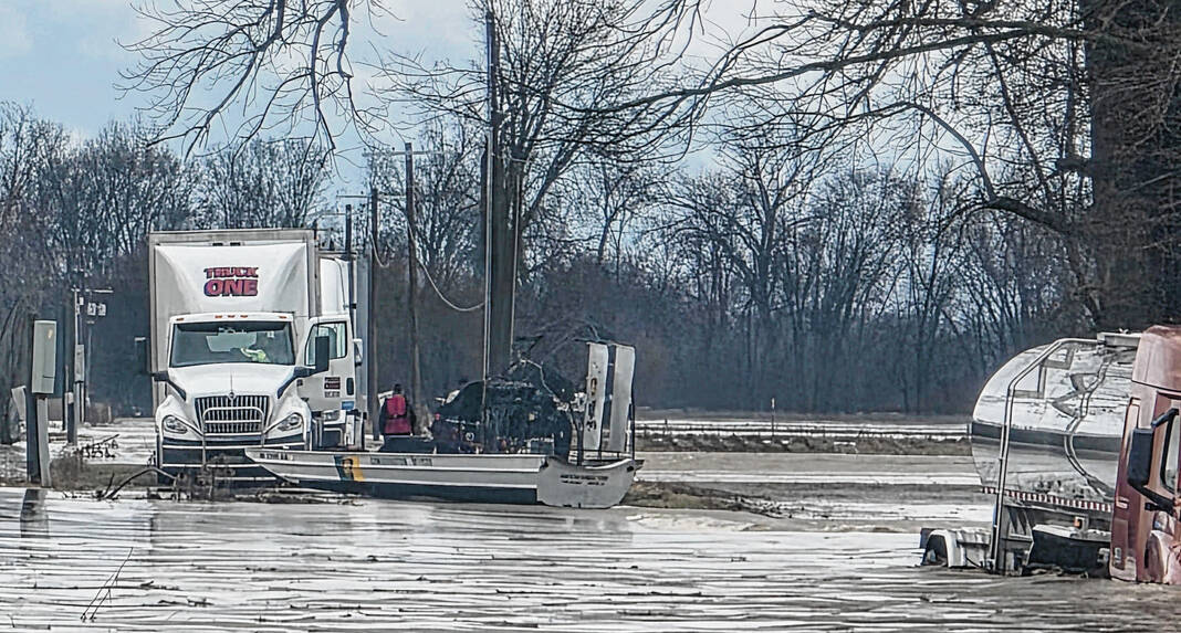 The Brownstown Fire Department Swift Water Rescue Team, was called to bring its hovercraft to that area to help first responders from Hamilton Township Volunteer Fire Department with that rescue. A semitrailer also was reported in a ditch on State Road 250.