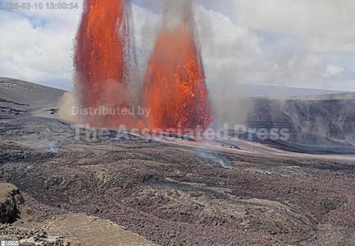 The fountaining that began Tuesday morning marked the eruption’s 43rd episode since it began in December 2024. A livestream showed two fountains of bright-red lava and smoke. It’s unclear how long the fountaining will last. Some episodes have lasted a few days and others a few hours.