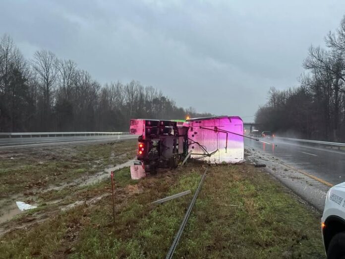 SEYMOUR — Troopers from the Indiana State Police-Versailles Post are on the scene of an overturned bobtail semi in the median of I-65 near the 44 mile marker in Jackson County.