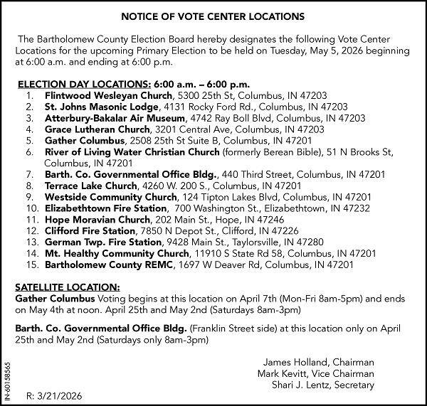 60158565 NOTICE OF VOTE CENTER LOCATIONS03/21/2026 Public Notice