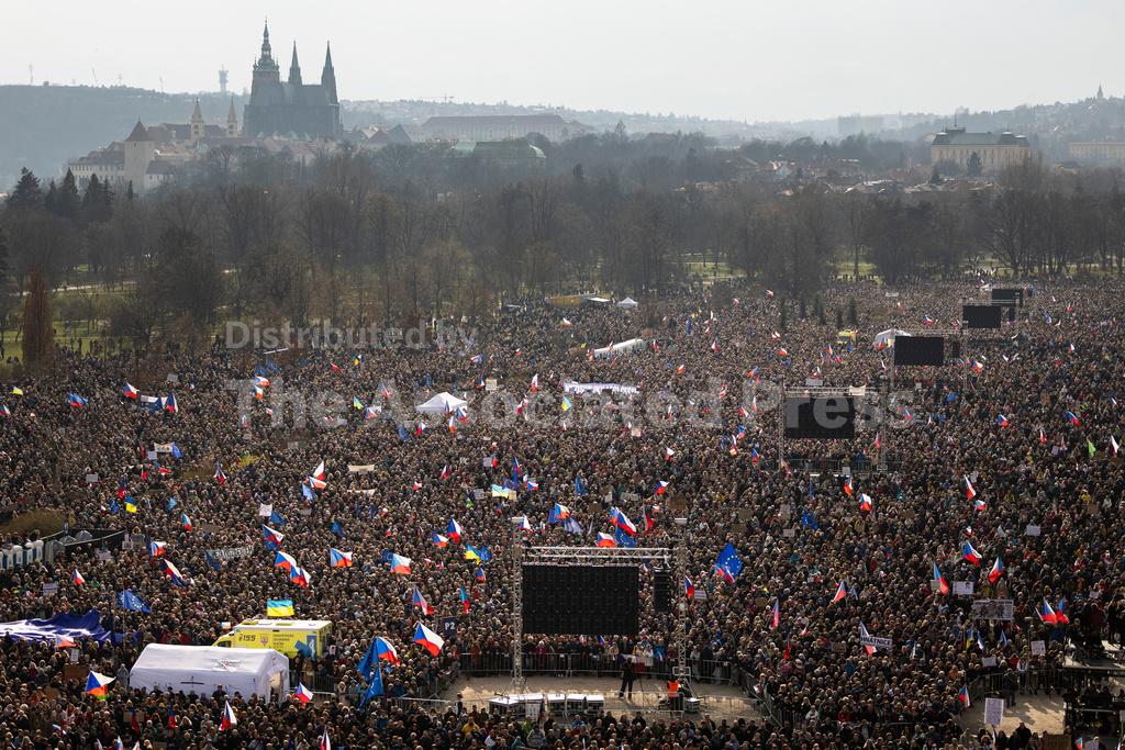 People in the crowd, who organizers estimated at 200,000, were waving Czech national flags, while one of the banners on display read: “Let’s defend democracy.”