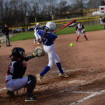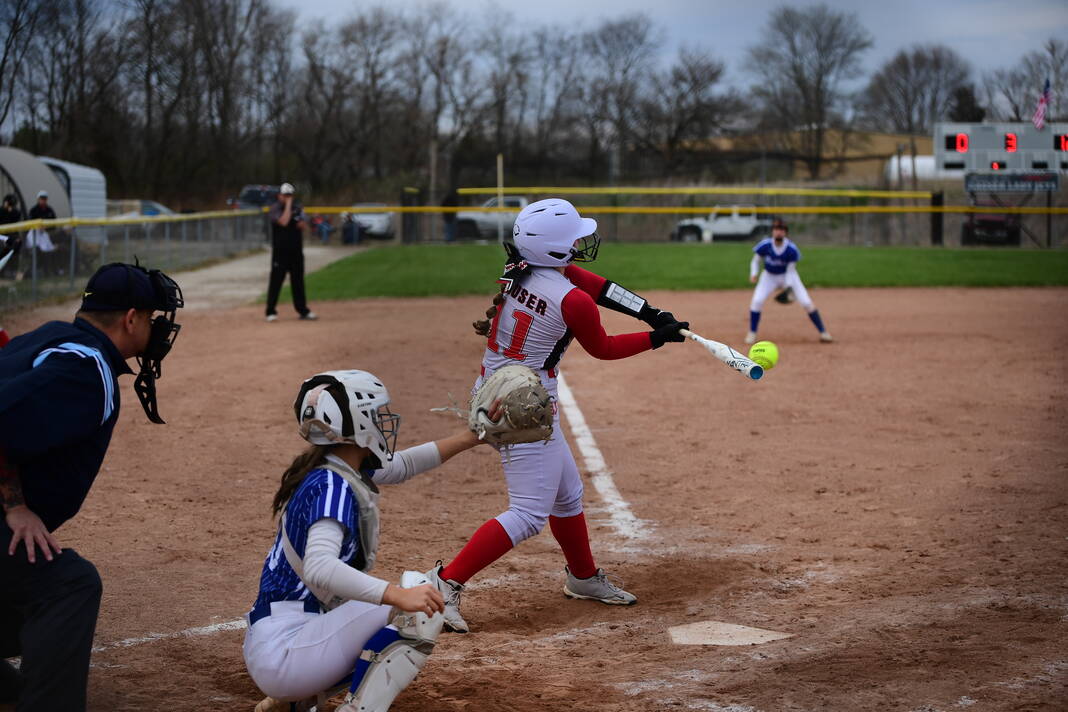 Jennings County’s Emma Clapp smacks a single to left field during a game against Hauser Tuesday at Hauser High School.