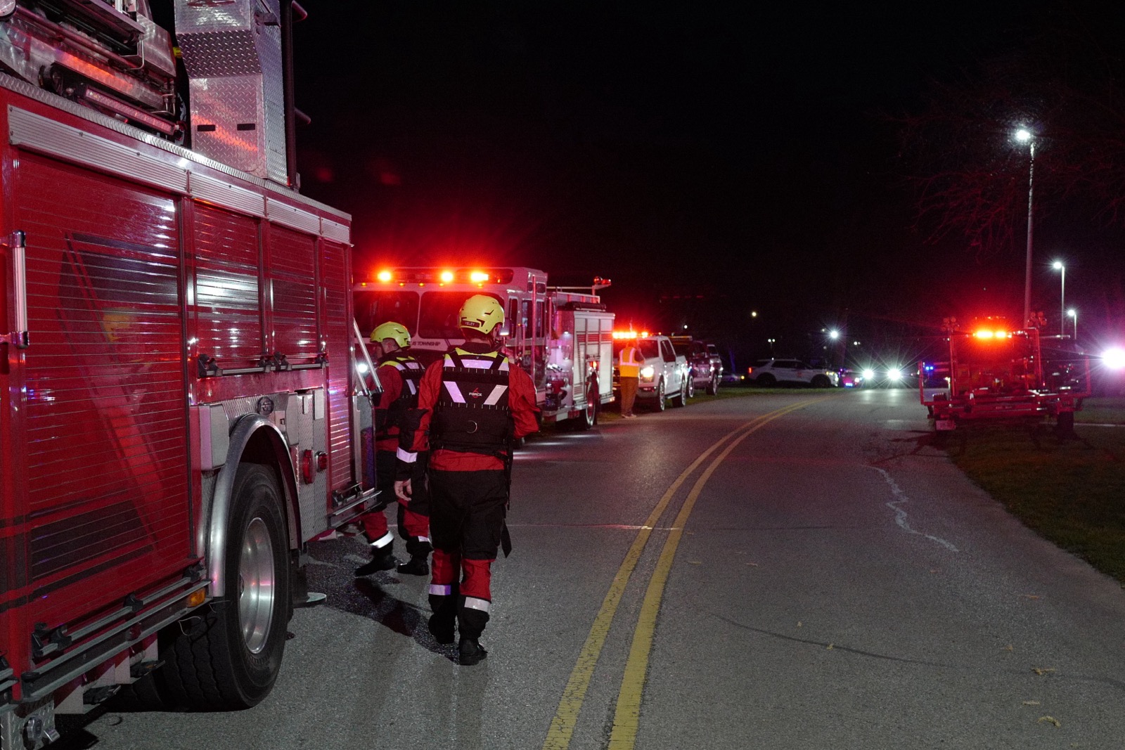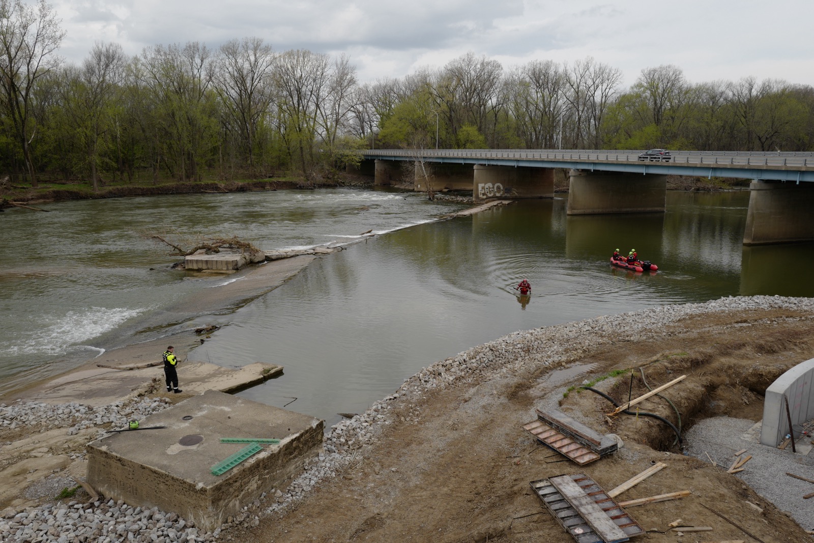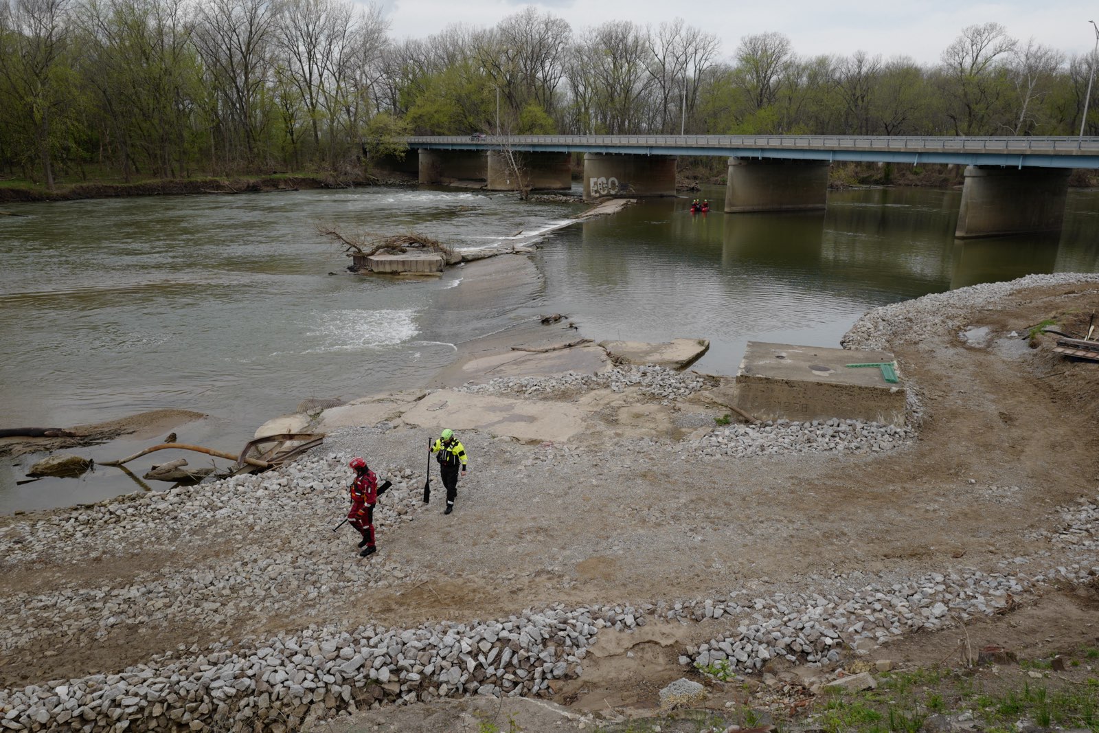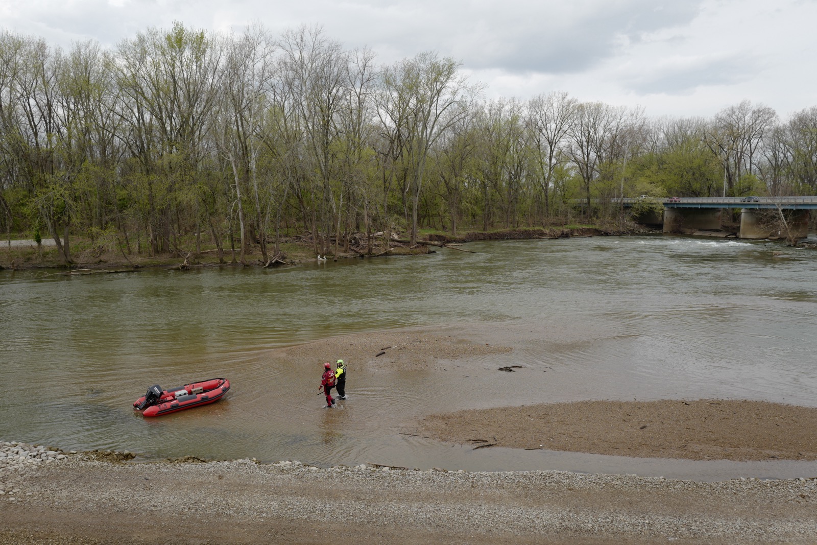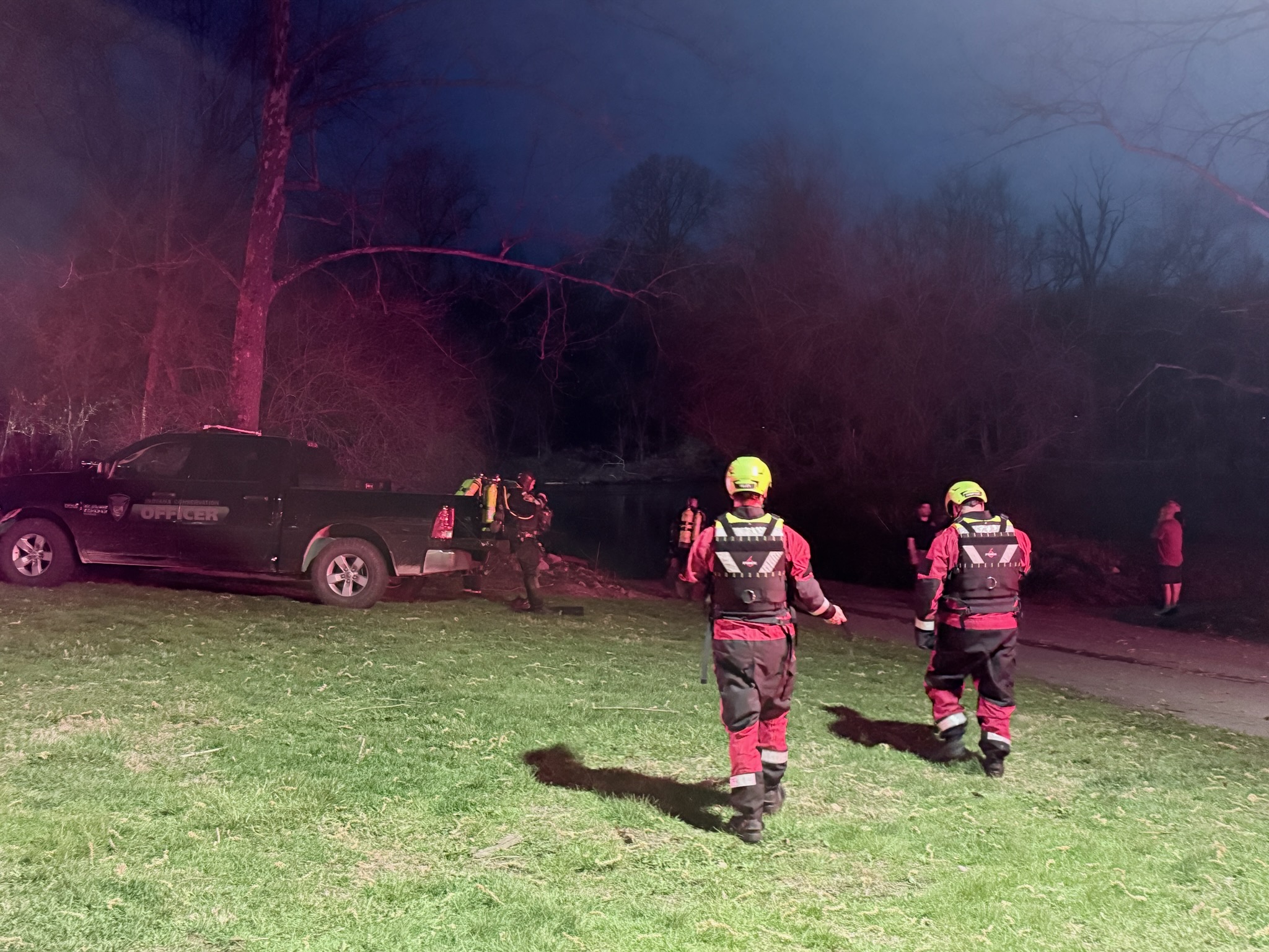 Columbus firefighters and the Bartholomew County Water Rescue Team soon arrived on the scene and launched three boats to search the river. Search operations were conducted into the dark over a period of four hours and including dive operations.