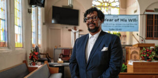 Calvary Community Church associate pastor Oscar Tipton works to create welcoming...