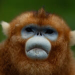 With their distinctive shaggy orange manes, pale blue faces and dense fur covering their hands and feet, it's hard to mistake China's endangered golden...