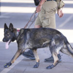 Some sniffer dogs at the Club World Cup outfitted with booties to protect their...