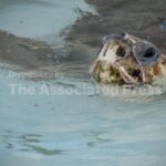 JUNO BEACH, Fla. (AP) — Cheers rose from a bundled-up crowd as a loggerhead sea turtle that survived a likely shark attack trundled back...