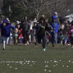 Children race to collect marshmallows dropped from a helicopter at a Detroit-area park