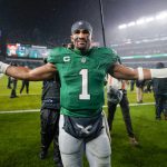PHILADELPHIA (AP) — Jalen Hurts walked off the Linc field with his arms extended in celebration as the Eagles crowd — which had booed...