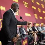 ASHBURN, Va. (AP) — Magic Johnson made a surprise appearance at Washington Commanders practice Wednesday, talking to players and coaches for the first time...