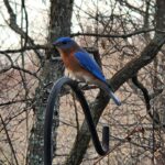 Kay Matthews saw this Eastern Bluebird on shepherd hook in her backyard.