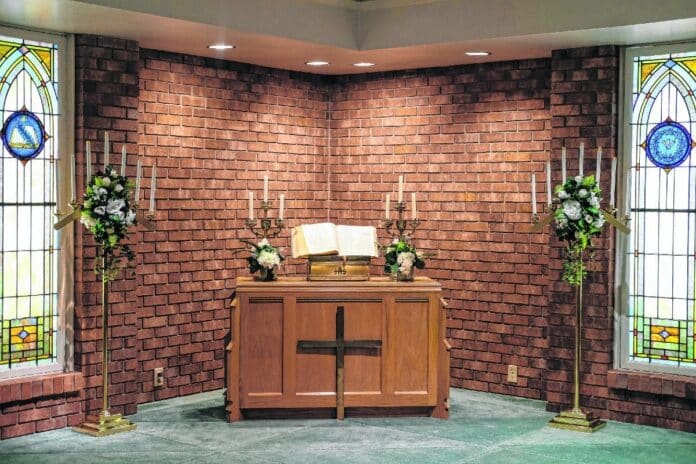 Married couples can celebrate love and commitment by revisiting the pledges they made to one another — ‘til death do us part. First United Methodist Church at 618 Eighth St. in downtown Columbus is offering five-minute, no-appointment vow renewals between 11:30 a.m. and 1 p.m. and again from 5 to 6:30 p.m. today. The individual time slots will include a brief liturgy, blessing of rings, and a short prayer in the chapel adorned with floral arrangements and candelabras — and an artsy marriage banner.